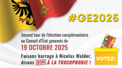 Pour le second tour de l’élection complémentaire au Conseil d’État genevois du 19 octobre 2025, la FATSR recommande de faire barrage à Nicolas Walder en votant pour Lionel Dugerdil (Liste N° 3 – Alliance droite et Centre-droite). …[Lire la suite]